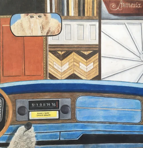 In the autumn of 1999, our van was recovered. It was found on the streets of Dodge City, KS, thousands of miles from its Colorado home. Stolen Adventures is a collection of drawings, photographs, and collages of the people, places, and wonders the van may have experienced on its journey.
