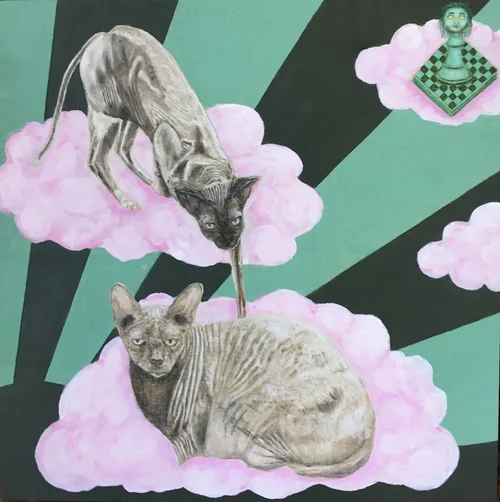 The Lady and the Rock is a collection of pastel paintings inspired by the subdued palettes and crumbling walls of Alcatraz, as well as my son’s fascination with ladybugs (and all other insects). In this series based in imperfect realism, I explore the possibility of hope and light within the confines of the haunting, geometric images of this iconic prison.